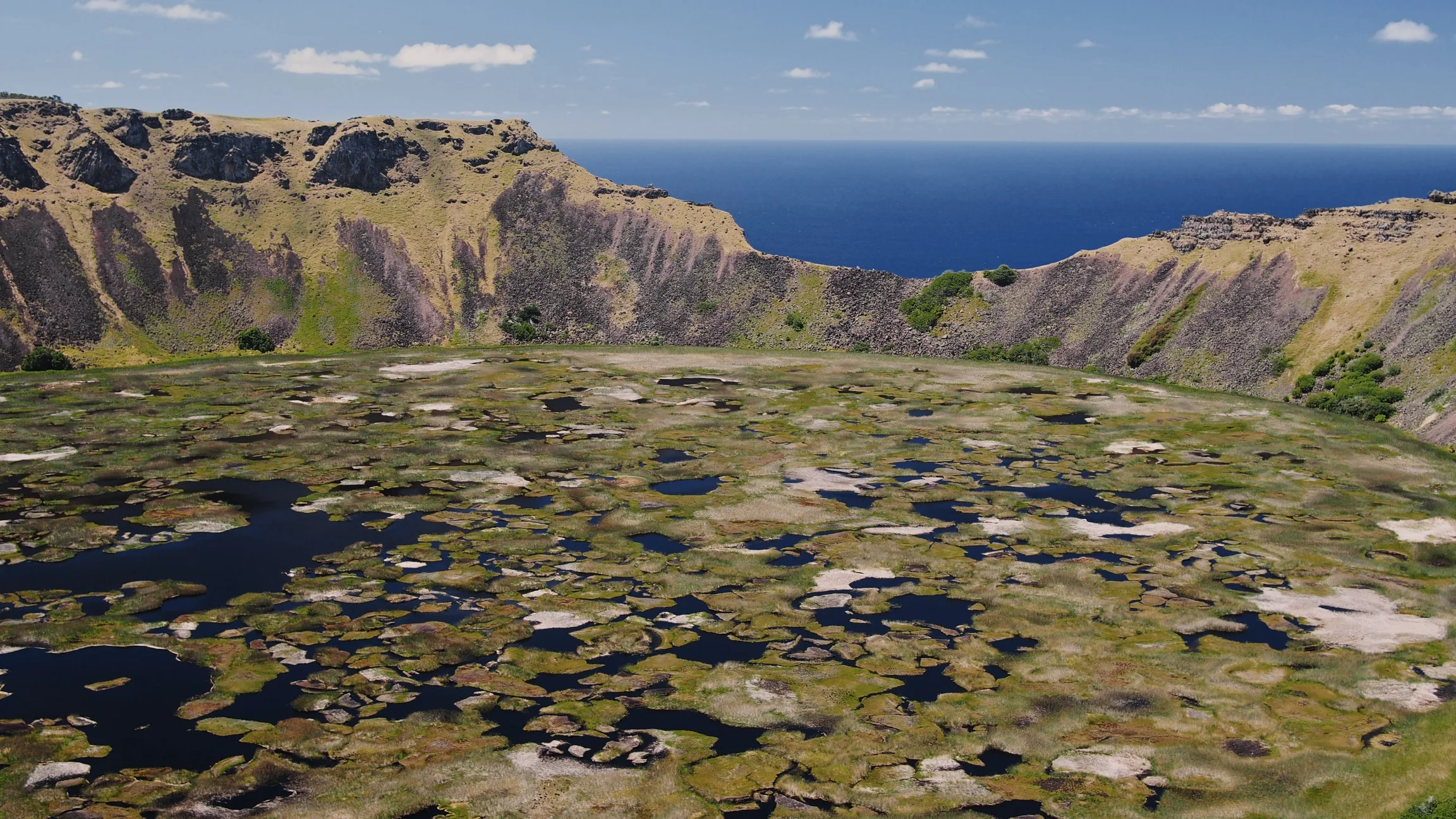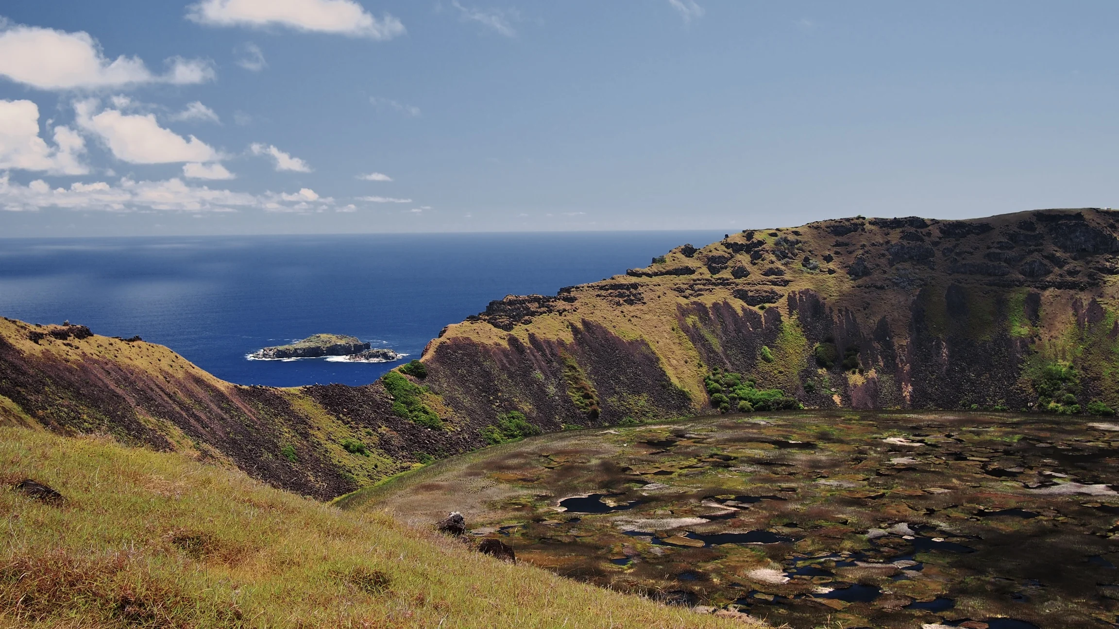 Beaches weren't the only thing, I didn't know existed on Easter Island. Turns out, there are many hiking trails visitors can enjoy all around. With a few more days on the island than most, we enjoyed three hikes. The first was around Rano Kau (row 1 below), one of the extinct volcanoes on the island. The trail lets you walk around a good part of it; that is, until you reach that "bite" and you must turn around. We really enjoyed getting a close look of the motu (islets), which held great importance in the 17th century when the birdman competition was instituted. As a way to restore order when moai carvings had ended and resources were depleted, each tribe had to opportunity to lead by participating in the competition. The latter involved scaling down the cliffs of the volcano, swimming to the motu and grabbing the first egg of the migrating Sooty Tern before returning to the island with the egg unbroken.