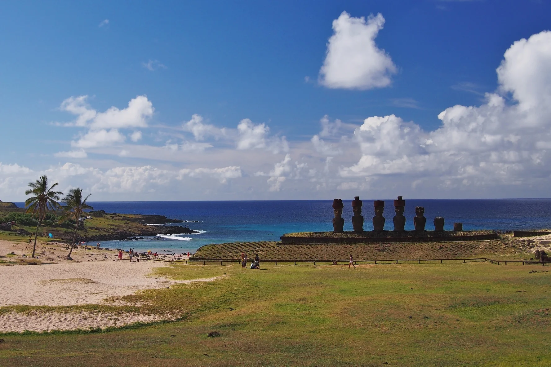 I didn't know about the beaches on Easter Island because no one ever talks about them. Turns out, there are two beautiful beaches with incredible turquoise waters. The pictures below, taken at Playa de Anakena, provide a glimpse into the lesser known part of this island.